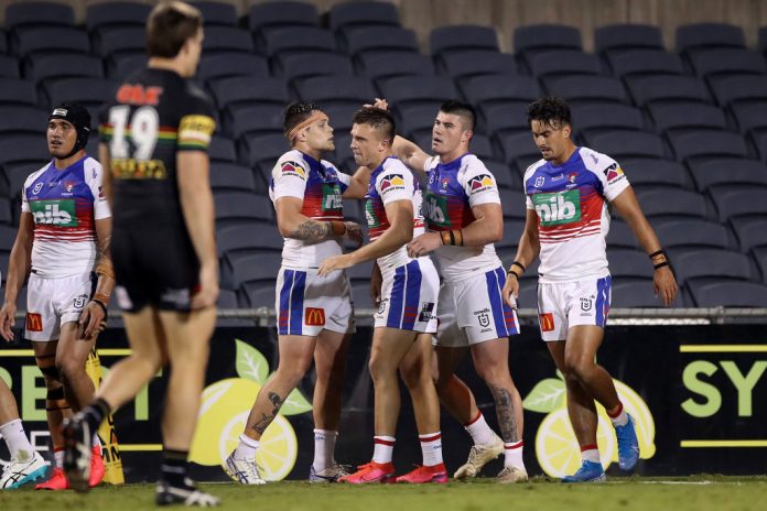 Newcastle came within a whisker of snatching one of the club’s greatest ever wins but had to settle for a courageous 14-all draw with Penrith at Campbelltown Stadium on Sunday afternoon.