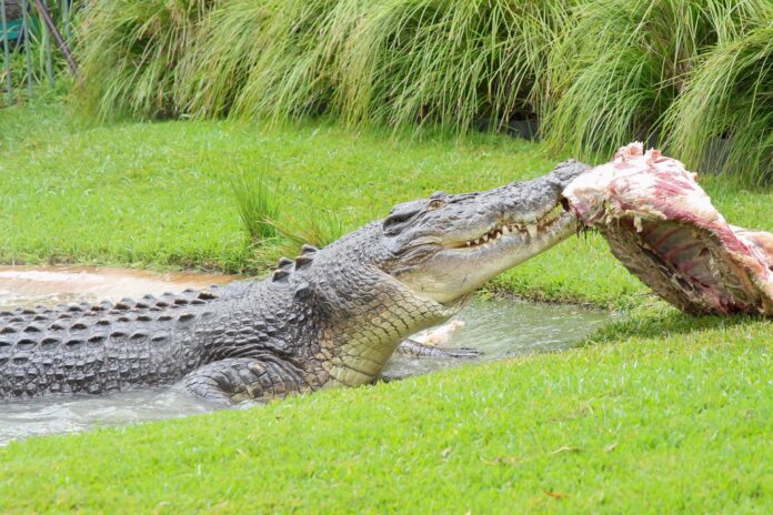 Zookeepers presented The Devil In Disguise with a massive carcass, providing powerful enrichment that closely mimics how crocs hunt and feed in the wild.