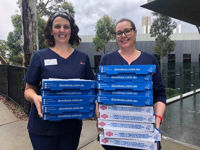 As local Domino’s franchisees, the pair are providing frontline workers with piping hot pizzas as well as job opportunities for those out of work.