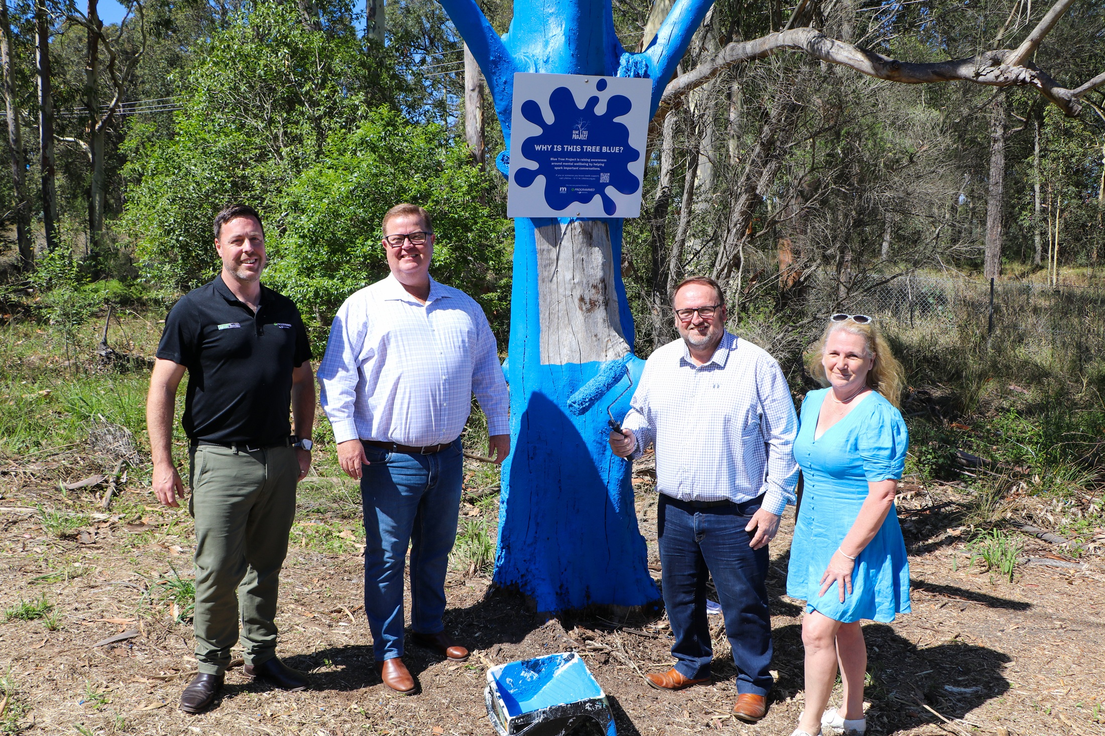 The Blue Tree Project, a charity that kicked off in 2019 after the tragic loss of Jayden Whyte – a much-loved son, brother and friend – to suicide, transforms dead plants into vivid symbols to serve as a visible reminder that it’s okay not to be okay.