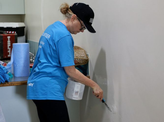 Volunteers wearing blue T-shirts were kept busy painting a fresh start for almost 400 families on the Hunter and Central Coasts this week.